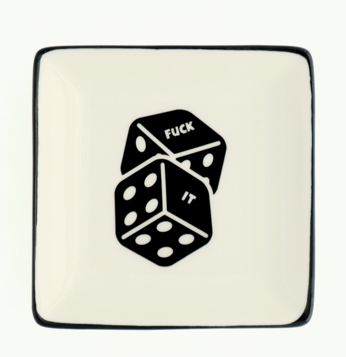 Sometimes, life throws curveballs, and the best response is just to say, "Fuck it" Newly designed trinket tray. Product Dimensions: 4.25" x 4.25" x .75"
