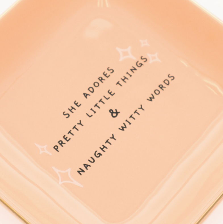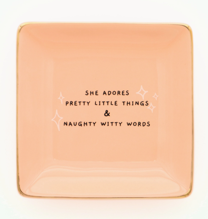 If you know someone who loves princess treatment, this trinket tray is for them. She adores pretty little things and naughty witty words. Newly designed trinket tray. Product Dimensions: 4.25" x 4.25" x .75"